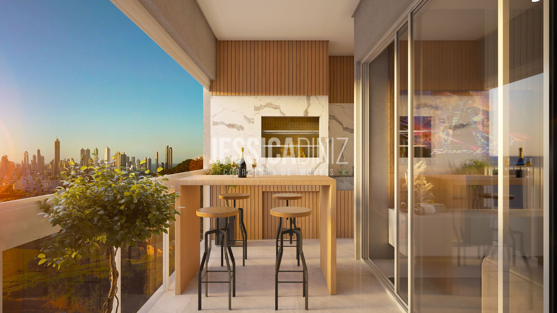 Living integrado, área de serviço com circulação, sacada com churrasqueira a carvão, infra para carro eletrico na garagem, fechaduras eletrônicas, manta acústica, nicho no box dos banheiros, portas maciças com laudo acústico, porcelanato, gesso rebaixado, piso vinílico nas áreas íntimas, rodapé de 10cm, pé direito de 2,65m, brise na laje técnica para ar condicionado, dumper na churrasqueira, azulejo retificado nas paredes de áreas molhadas, e infraestrutura para: automação, climatização, internet e aquecimento a gás.